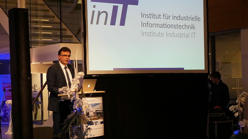 „Als größtes Institut der Hochschule OWL verstehen wir uns nicht nur als reine Forschungseinrichtung, sondern möchten auch einen gesellschaftlichen Beitrag leisten“, so Institutsleiter Professor Jürgen Jasperneite. Am inIT werde daher geforscht und gleichzeitig auch der Ingenieurnachwuchs ausgebildet. Die derzeit mehr als 60 Mitarbeitenden in verschiedenen Kompetenzfeldern der industriellen Informationstechnik sind nicht nur echte Spezialisten auf ihrem Gebiet, auch international bauten die Lemgoer kontinuierlich ihre Sichtbarkeit weiter aus. Nicht nur die unzähligen nationalen und internationalen Forschungsprojekte und Publikationen legen davon Zeugnis ab; auch als Ausrichter von Fachkonferenzen wie der „Kommunikation in der Automation – KommA“, der „Bildverarbeitung in der Automation – BVAu“ oder jüngst der internationalen IEEE-Konferenz „ETFA“, haben sich die Wissenschaftler einen Namen gemacht. Mehrfach wurden sie bereits auf internationalen Konferenzen für ihre wissenschaftlichen Tagungsbeiträge prämiert. „Nun - zehn Jahre später - sehen wir, dass sich der Zusammenschluss von interdisziplinären Fachgebieten verbunden mit viel Engagement erfolgreich bewährt hat“, erläuterte Jasperneite.