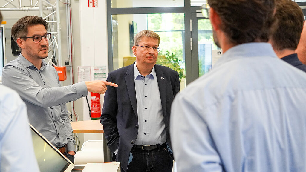 Vertreterinnen und Vertreter von Miele, GEA Westfalia, TIQ Solutions, der Gebr. Becker GmbH, der Jürgenhake GmbH sowie der Forschungseinrichtungen Fraunhofer IOSB-INA, Fraunhofer IEM und inIT nutzten die Gelegenheit zum aktiven Austausch. Ziel war es, erste Ansatzpunkte für gemeinsame KI-Projekte zu identifizieren, neue Verbindungen zu knüpfen und sich mit den Forschungspartnern zu möglichen Formen der Zusammenarbeit abzustimmen.