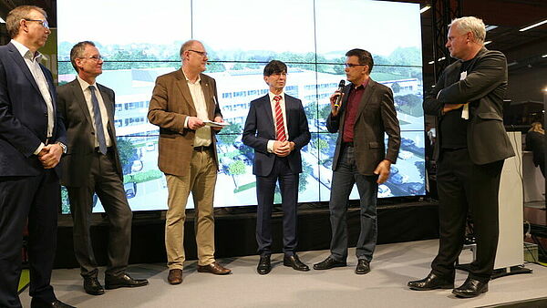 Zum Technologiestandort Ostwestfalen-Lippe erläuterte Professor Jürgen Jasperneite (Leiter Institut für industrielle Informationstechnik (inIT) der Hochschule OWL), dass es mit dem CIIT und der SmartFactoryOWL regionale Vorteile in OWL gäbe. Rund 80% der Marktführer der Elektrotechnik sind in dieser Region verortet, so Jasperneite. Er betonte: „Gemeinsam sind wir stärker.“ Auch im Bereich Nachwuchssicherung habe Lemgo einiges zu bieten. Hier gibt es ein einmaliges Angebot für Studierende sagte Jasperneite an das Publikum gerichtet und stellte das besondere Umfeld des Technologiecampus hervor: „Jeder, der wissen will, wie Technik funktioniert, der sollte nach Lemgo kommen zum studieren.“ Professor Gunther Olesch (Vorstand Phoenix Contact und Präsidium IHK Lippe zu Detmold), als weiterer Teilnehmer der Talkrunde, appellierte an das Publikum: „Für gute Perspektiven, studieren Sie in Richtung Technik.“
