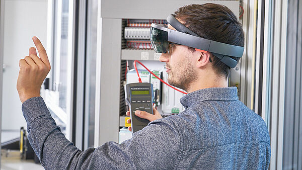 Ein Service-Techniker wird mit Hilfe von Augmented Reality durch die einzelnen Arbeitsschritte im Wartungsprozess geleitet. ©inIT