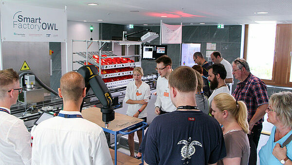 Reger Andrang: Zahlreiche Bürgerinnen und Bürger wollten einen Blick hinter die Forschungskulissen des BMBF werfen und die Lemgoer Ideen zur digitalen Fabrik selbst ausprobieren.