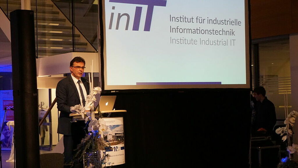 Also Dr. Oliver Herrmann, outgoing President of OWL University, was delighted about the anniversary and emphasized the success of inIT in his welcome speech: “The inIT has as the first In-Institute of OWL University an eventful history. Therefore, I am more than pleased about its successful work that is a crucial driver for innovations.”