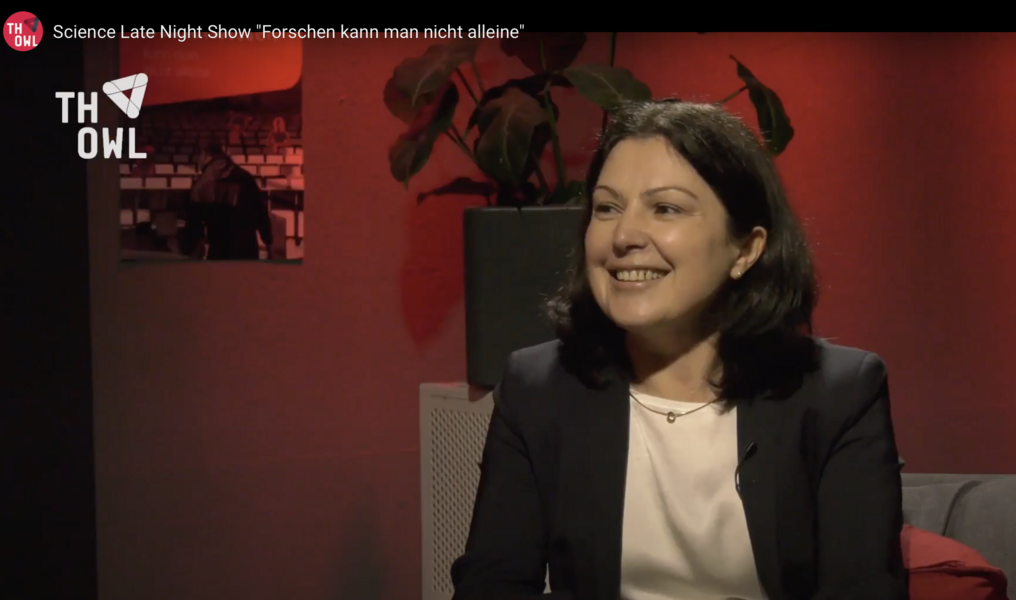 On April 01, the first anniversary highlight of the year took place: The Science Late Night Show, to which the Institute for Industrial Information Technology (inIT) was also invited. Because not only can you not kiss alone, you also can't do research alone. The media project was set up by students under the direction of Professor Kathrin Lemme, Vice President for Communications. The show was moderated by 1Live presenter and Lemgo native Freddie Schürheck, who interviewed Professor Helen Dörksen, a member of the inIT board, about her recent research projects.