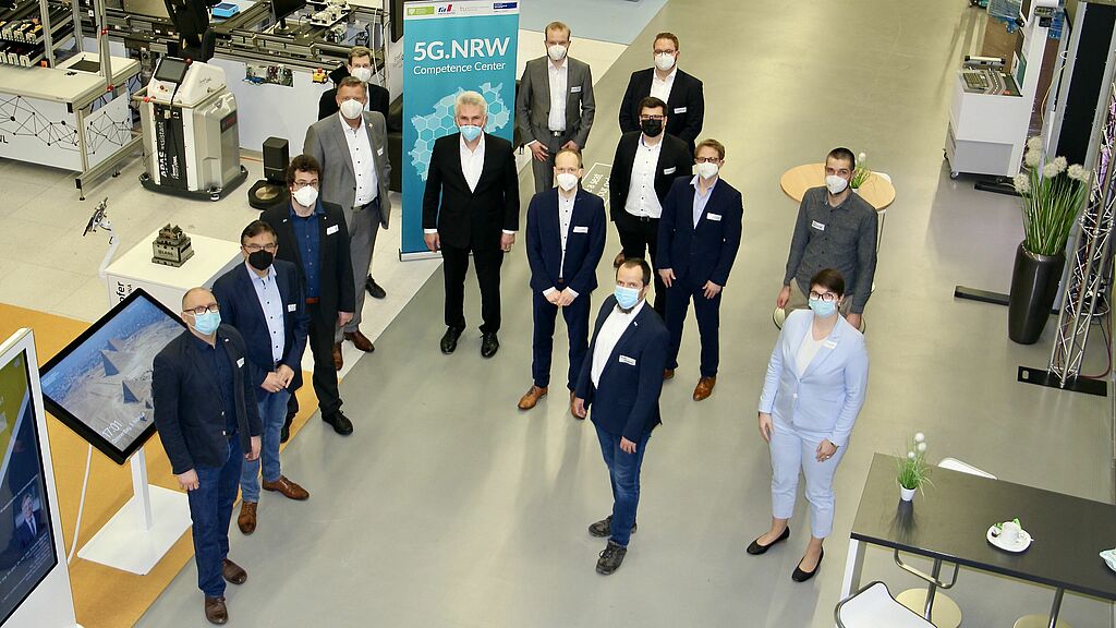 Last week, Prof. Dr. Andreas Pinkwart, Minister for Economic Affairs, Innovation, Digitalization and Energy of the State of North Rhine-Westphalia, came to see this for himself. Together with Matthias Goeken, a member of the state parliament from the Höxter constituency, and representatives of the 5G4Industry project and the Competence Center 5G.NRW, they discussed 5G as an implementation module in the overall digitalization and Industry 4.0 concept. Minister Pinkwart also sees great potential for industry: "In order for us in North Rhine-Westphalia to further expand our key position in the area of 5G, we must focus above all on the application fields of industry. The potential is great, and at the same time the requirements for data rates and latency are becoming increasingly important in the industrial context. With the 5G4Industry project, we are promoting a strong consortium of science and industry as part of the 5G.NRW competition that focuses on industrial requirements as well as the needs of small and medium-sized companies and provides important impulses for the OWL region and beyond." The project is being funded by the North Rhine-Westphalian Ministry of Economic Affairs, Innovation, Digitalization and Energy as part of the 5G.NRW competition. In total, the state government is funding 13 outstanding 5G projects with up to 26 million euros as part of the first round of the competition.