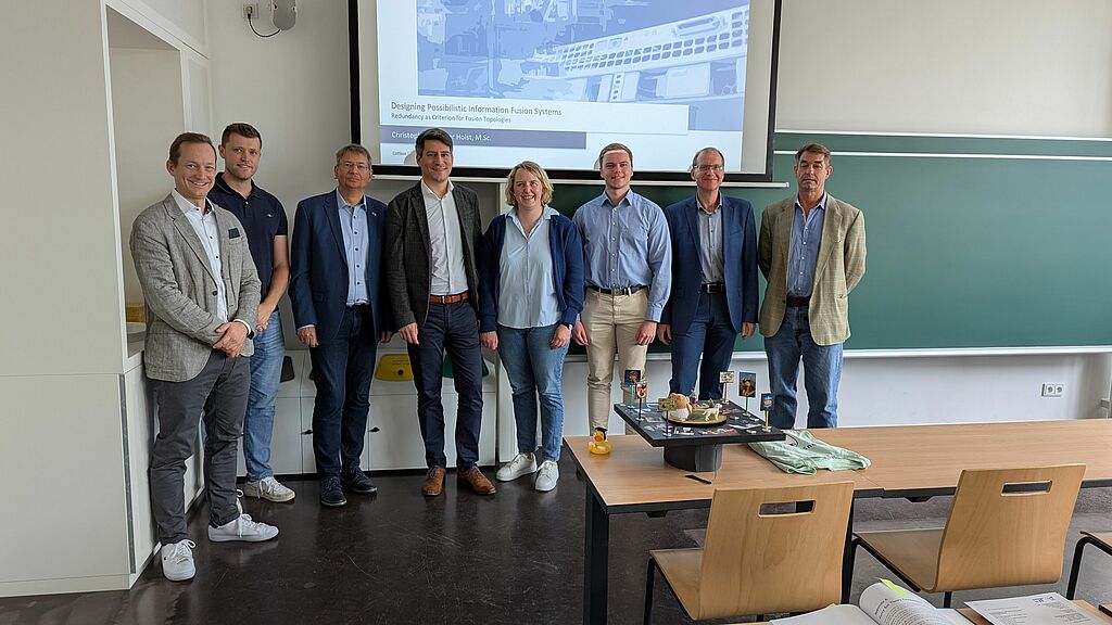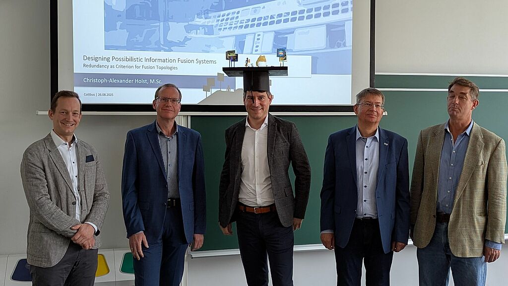 A great success for the Institute Industrial IT (inIT): We are pleased to announce that Christoph-Alexander Holst, research group leader of the Image Processing and Pattern Recognition and Sensor and Information Fusion research group headed by Prof. Volker Lohweg, has successfully completed his doctorate. His dissertation on "Designing Possibilistic Information Fusion Systems: Redundancy as Criterion for Fusion Topologies" was awarded "summa cum laude" by the doctoral committee on 26 August 2025.