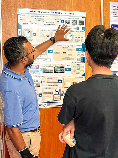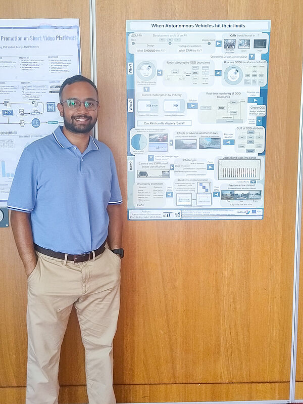 Ramakrishnan Subramanian presented a poster entitled ‘When Autonomous Vehicles Hit Their Limits', which explored the limitations of autonomous driving systems in real-world scenarios. The focus was on how automated vehicles react to unsafe conditions that arise due to situations they are not designed for, out of which few important use cases include slippery roads, poor visibility affecting the sensors or temporary events on roads like construction zones or closures due to accidents – and how such situations can be detected early and safely controlled.