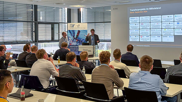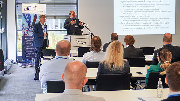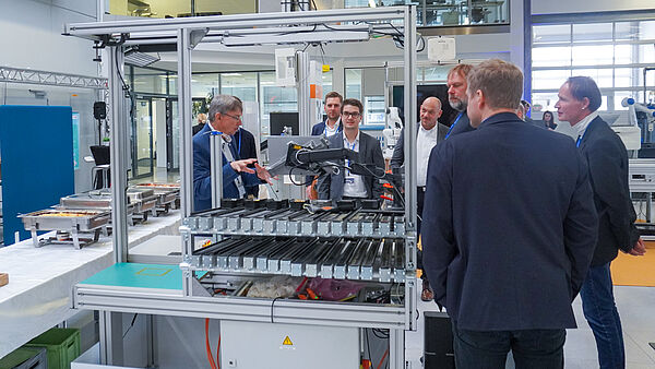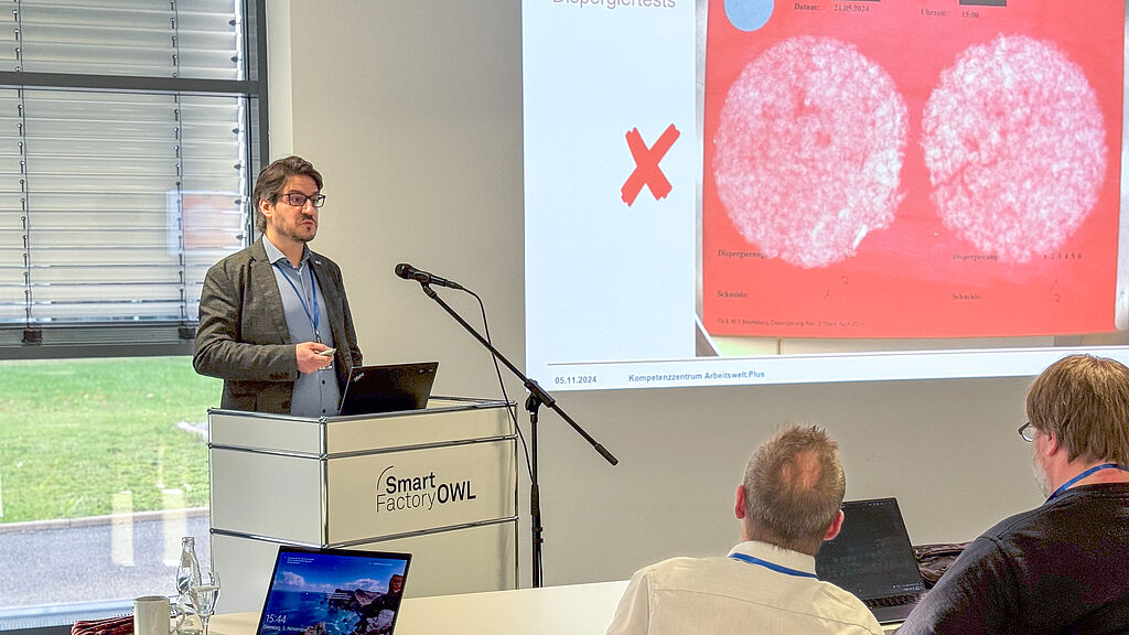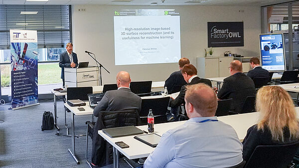 During a guided tour of the SmartFactoryOWL, participants had the opportunity to familiarise themselves with the innovative research environment on the campus. During this informative tour, Prof. Dr. Volker Lohweg presented several demonstrators.