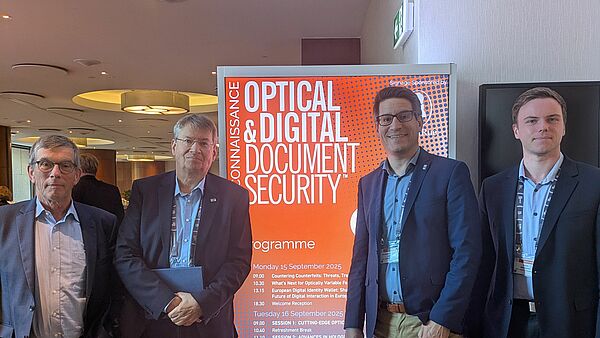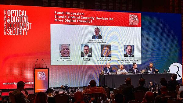 The conference discussed not only the vulnerability of AI systems in document verification, but also the question of whether optical security features such as holograms or other optically variable devices (OVDs) should be made more "digital-friendly" in the future. In addition to inIT Professor Volker Lohweg, internationally renowned experts such as Francis Duffy (Reconnaissance International, UK), Ian Lancaster (Lancaster Consulting, UK), Tony Poole (Document Security Alliance, USA) and Geoff Slagle (FaceTec, USA) also took part in the lively panel discussion.