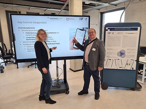 After the official handover of the keys, the numerous guests took a gallery walk to get an overview of the innovative ideas already being implemented in Lemgo. The inIT also presented itself on the topic of Smart Health with two AI-supported app developments against the background of an idiopathic Parkinson's disease and a stroke.