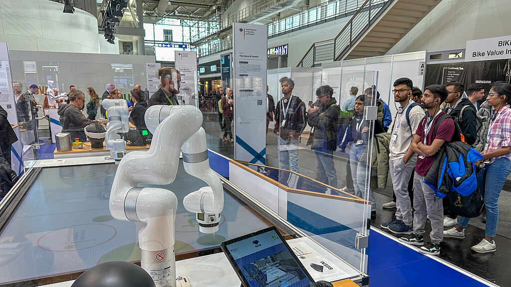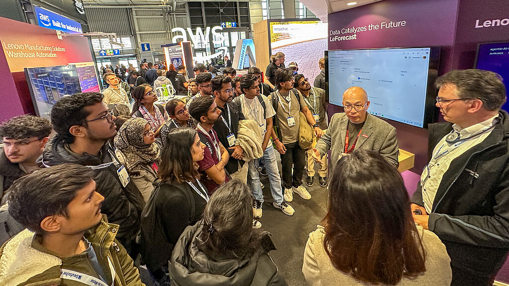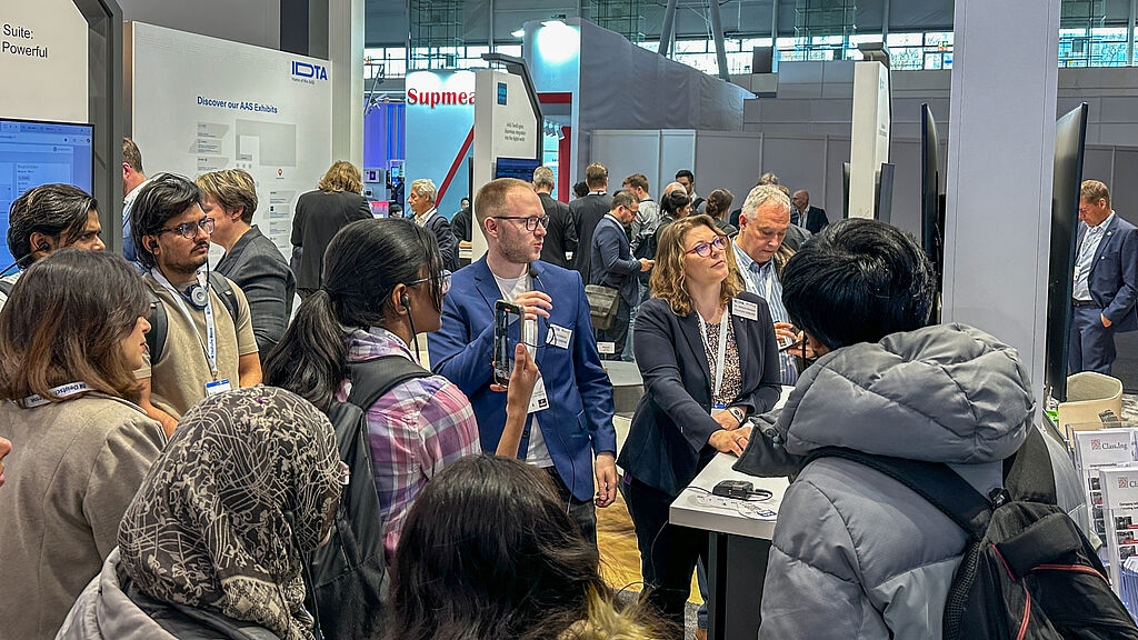 A particular focus this year was on applications of artificial intelligence (AI) in industrial automation and production. Students were given exciting insights into current developments in machine learning, autonomous systems and generative AI. Companies and research institutions presented advanced technologies that are making the engineering and operation of machines and systems increasingly efficient, flexible and sustainable. For example, a foundation model for time series analysis was presented at the Lenovo stand, which was pre-trained on extensive data from various industries, while the teleoperation of robots was demonstrated at the stand of the Federal Ministry of Education and Research (BMBF). At the stand of the Industrial Digital Twin Association (IDTA), Dr. Stefanie Hittmeier and Dennis Heitkamp (both Fraunhofer IOSB-INA) showed how generative AI can be used to automatically generate interoperable software structures - so-called administration shells (AAS) - from documents or images.