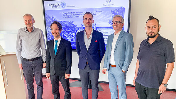 The examination board included Prof. Dr. Kurt Sandkuhl, Prof. Dr. Michael Fellmann, Prof. Dr. mult. Carsten Röcker and Prof. Dr. Stefan Bruckner. The defence highlighted the high relevance of interdisciplinary research at the interface of computer science, cognitive science and mobility systems.
