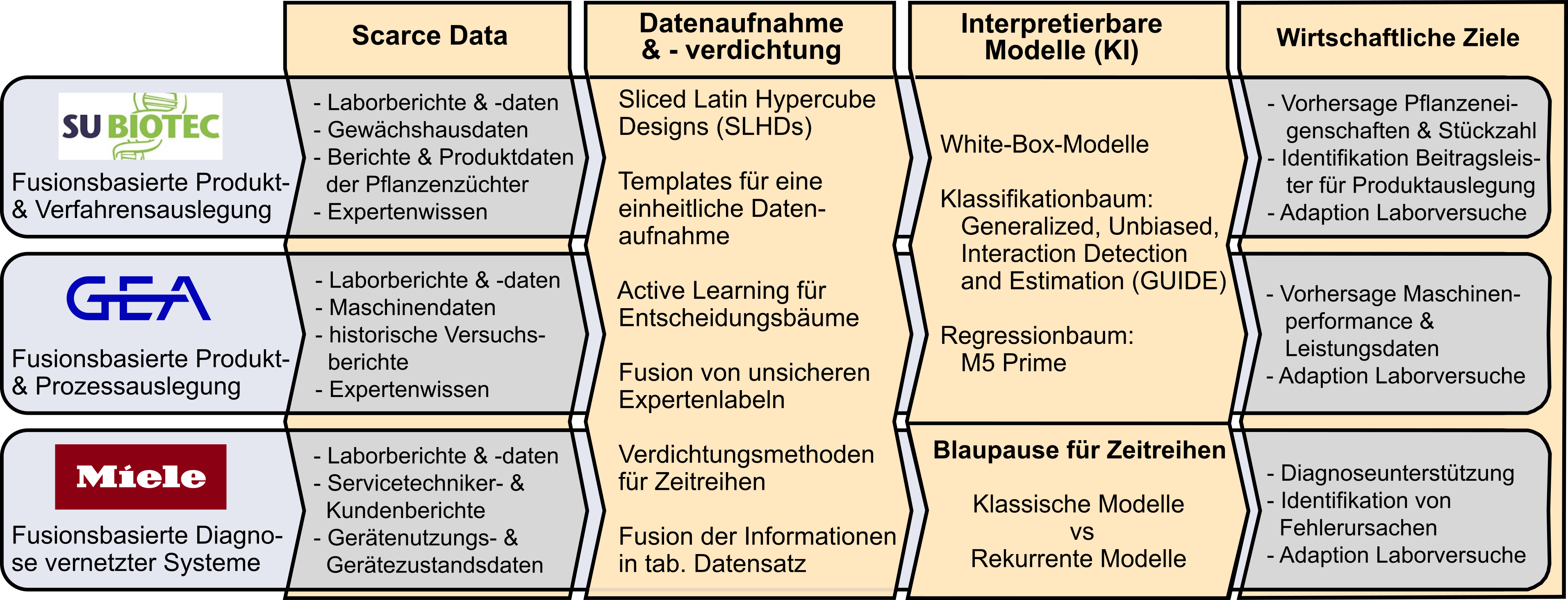 Figure 1: Goals of the project partners SU BIOTEC, GEA and Miele in the AI4ScaDa project.