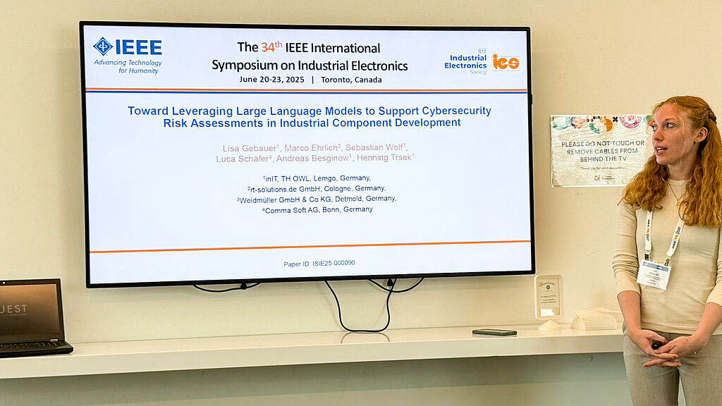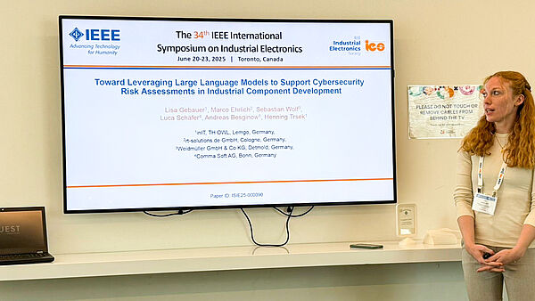 Lisa Gebauer presented a paper at the IEEE ISIE 2025 conference in Toronto on how the use of large language models can contribute to security risk assessments in industrial component development.