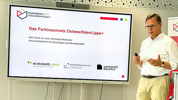 Prof. Dr. Christoph Redecker began by presenting the ParkinsonnetzwerkOWL+ (PNOWL+) – a regional care network that brings medical professionals, research institutions, patients and their families closer together. The aim is to provide coordinated, everyday care based on existing structures and digital solutions