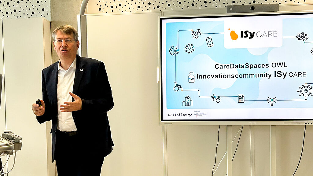 Finally, Volker Lohweg presented the ISyCARE innovation community, which is developing new, forward-looking approaches to healthcare in the OWL region. The aim is to close care gaps and strengthen the independence of those affected through socio-technical innovations. With the CareDataSpacesOWL starter project, inIT is testing the establishment of secure, cross-sector health data spaces while protecting patient data sovereignty.