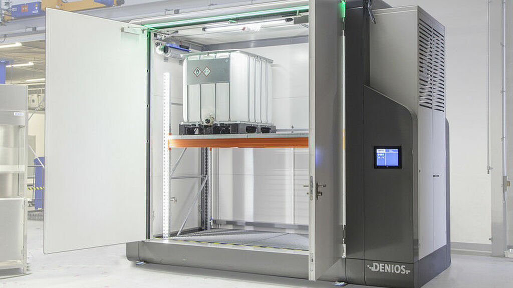 Successful implementation of the sensor-based early warning systems in the demonstrator of an intelligent hazardous materials warehouse. Source: Denios AG.
