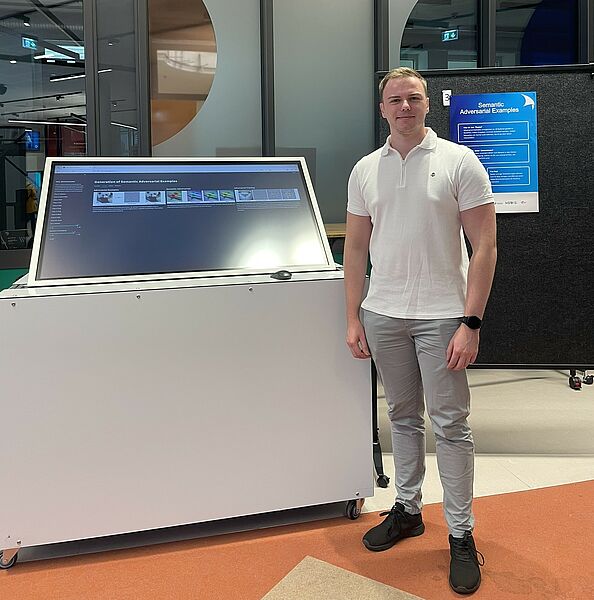 Julian Bültemeier, research assistant in the Discrete Systems working group, used “semantic adversarials” to demonstrate how easily AI systems can be deliberately deceived. Even minimal changes to images—such as in color or color saturation—can cause an AI to completely misinterpret an object, even though it looks unchanged to humans.