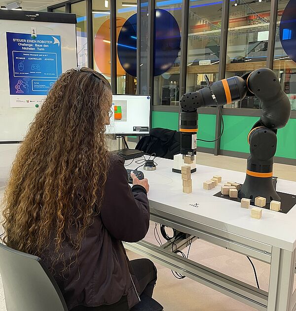 Sinem Görmez's demonstration also attracted a great deal of interest. She brought along a collaborative robot that visitors could control themselves. The task: build the tallest tower possible!