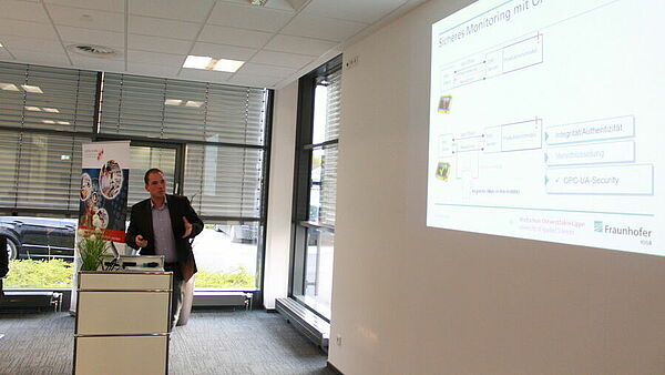 Industry 4.0 compact: In the course of a basic workshop inIT employee Andreas Schmelter informed about 20 company representatives about Industry 4.0-safety concepts. Numerous specialist talks as well as the practical demonstration of I4.0-applications made clear how I4.0 can be practically applied to the own company.