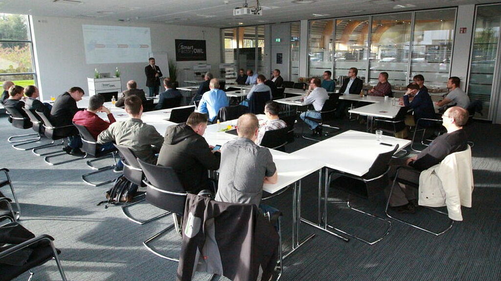 The company representatives visited the research and demonstration factor SmartFactoryOWL on Thursday, 19. October 2017. The event was organized by Fraunhofer IOSB-INA and Kompetenzzentrum Digital in NRW.