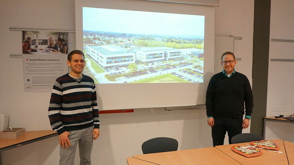Marco Ehrlich (l.) and Uwe Mönks (r.) talked with students about career opportunities at inIT and voluntary commitment.