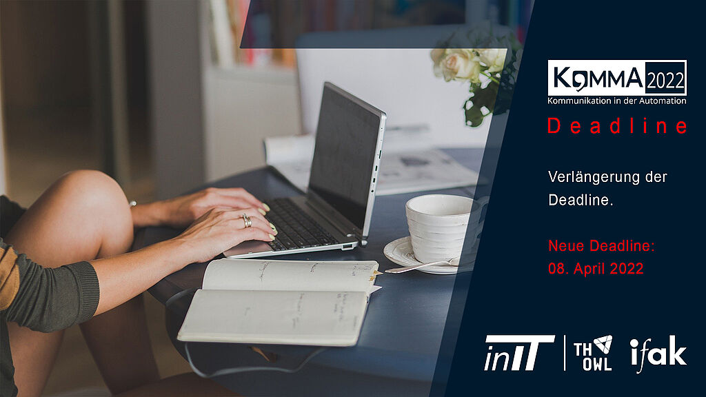 Communication in automation - this is the focus topic of KommA 2022 in Lemgo. Many interesting contributions have already been received. Nevertheless, we have decided to extend the deadline by one week in order to offer the chance to submit further high-quality contributions for review. The new deadline will be extended from March 31, 2022 to April 08, 2022.
