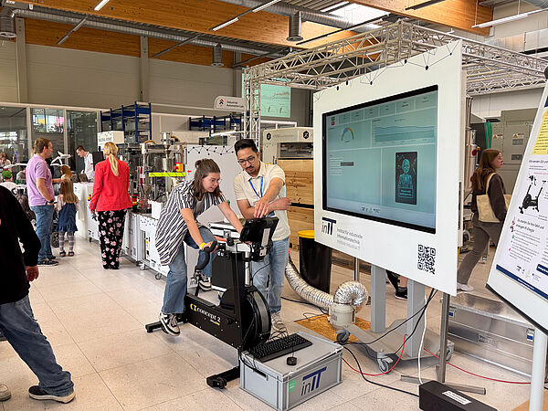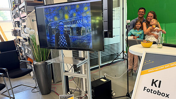 Among other things, guests were able to experience how AI generates individual portraits, how VR games are created from student theses and the potential and risks of deepfakes and generative AI. At other stations, energy-efficient AI models were visualised on the ergometer, modular production processes were demonstrated and autonomous vehicles were presented — all with the opportunity to engage in direct dialogue with researchers, students, and other partners.
