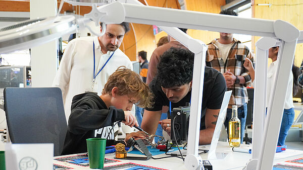 Soldering like the pros: In the IA Lab, guests were able to lend a hand and connect electronic components themselves.