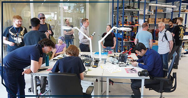 A complete success: On Saturday, May 13, 2023, more than 500 visitors visited the OpenFactoryDay 2023 at SmartFactoryOWL. The OpenFactoryDay was organized together with the Fraunhofer Institute at the Innovation Campus Lemgo. At the same time, the Open Day of the Ostwestfalen-Lippe University of Applied Sciences (THOWL) took place, where the departments opened the doors of their laboratories to the public.