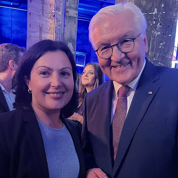 In a conversation after the award ceremony, Professor Helene Dörksen was able to explain her research progress to Federal President Steinmeier. While she recently used laser-induced fluorescence spectroscopy to excite and evaluate sex-specific substances inside the hatching egg, she is now researching further development of the method.