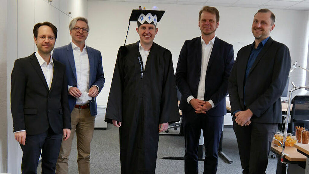 Sebastian Büttner, who was employed as a research assistant at the Institute Industrial IT (inIT) at the TH OWL from 2015 until the end of 2021 and researched there in the field of industrial assistance systems, dealt with precisely this topic in his doctoral thesis. The scientist successfully defended his dissertation entitled "Projection-based augmented reality assistance in assembly" on May 04 at the Clausthal University of Technology with the grade "very good". The examiners included Prof. Dr. Michael Prilla from TU Clausthal, Prof. Dr. Michael Fellmann from the University of Rostock and Prof. Dr. Carsten Röcker from TH OWL.