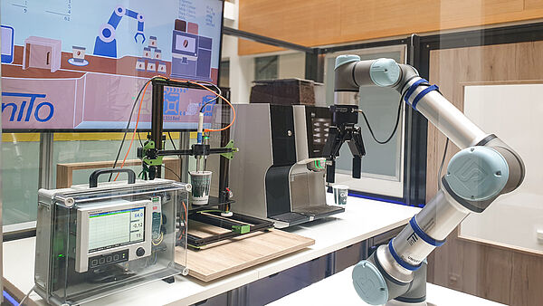 New hardware was added to CinITo for the project meeting. This will enable the concept of tamper-proof quality certification to be implemented automatically via the robot in future, and will allow the developed approaches to be tested further in terms of practical application.