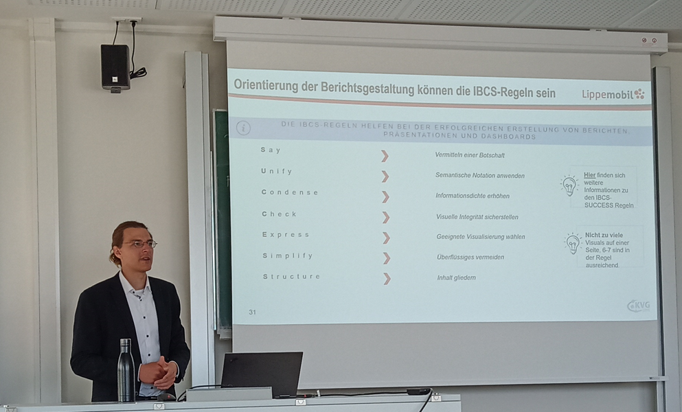 The topics of data preparation and the added value of data analysis for decision makers were also highly relevant. The students then had the unique opportunity to work with real data themselves and develop concrete suggestions for improvement of public transport in Lippe. The students' creativity and commitment were impressive and resulted in outstanding proposals.