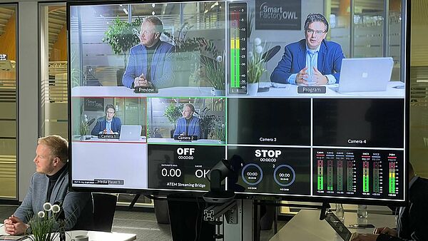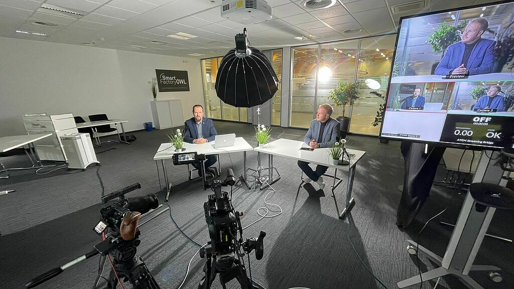 The Institute Industrial IT - inIT of Technische Hochschule OWL held a hybrid event on the topic of "Transfer Dialog 5G in Industry" on December 1, 2021. Around 50 participants followed the nearly 20 contributions with great attention, about half has been live demonstrations of applications in SmartFactoryOWL. Representatives from industry (users and technology providers), research and relevant business associations (5G-Acia, InnoZentOWL) came together. The well-founded support offered by researchers at inIT in Lemgo for the integration of 5G technology into future industrial plants became clear. For example, demonstrations using inIT's 5G campus network at SmartFactoryOWL showed the benefits and versatility of the applications that 5G enables and also how easy it can be to use the network.