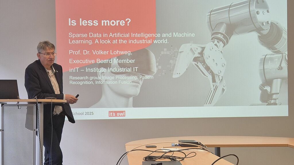 inIT presented current research work, focussing on the handling of sparse and scarce data. CITEC provided insights into robotics and its industrial application. Exciting presentations were followed by a practical presentation of projects supported by various demonstrators at CITEC at Bielefeld University. The inIT presented several projects from the context of it's OWL and Arbeitswelt.Plus, including the AI4ScaDa project, the AutoDis transfer project and a current PhD approach to Semantic Adversarial Examples from the SAIL project. The presentations showed how modern AI methods sre applied in industrial practice and offered participants concrete insights into current research topics.