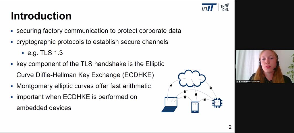 During the three conference days, a total of 36 papers were presented, presenting the latest trends and innovative research approaches from industrial communication. The inIT was strongly represented with four publications. Maxim Friesen et al. wrote about the use of AI methods to perform network management more efficiently and optimally without manual access. Arne Neumann et al. reported on short-term and long-term resource planning in 5G campus networks. Marco Ehrlich et al. analyzed the topic of "Security Risk Assessment" in industrial facilities in his paper to be able to evaluate the potential of automatic execution. In addition, Lisa Gebauer et al. presented another paper from the security area, which was about the performance investigation when using Diffie-Hellman key exchange protocols on an embedded system.