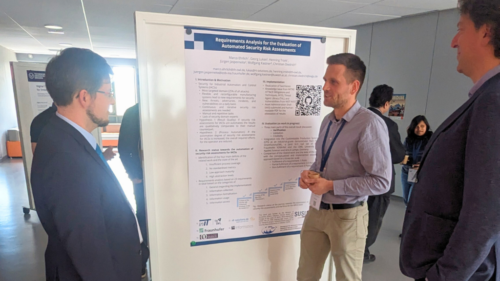 In his work-in-progress paper entitled "Requirements Analysis for the Evaluation of Automated Security Risk Assessments", inIT employee Marco Ehrlich focussed on the development of an automated approach for security risk assessments in industrial automation and control systems (IACSs).